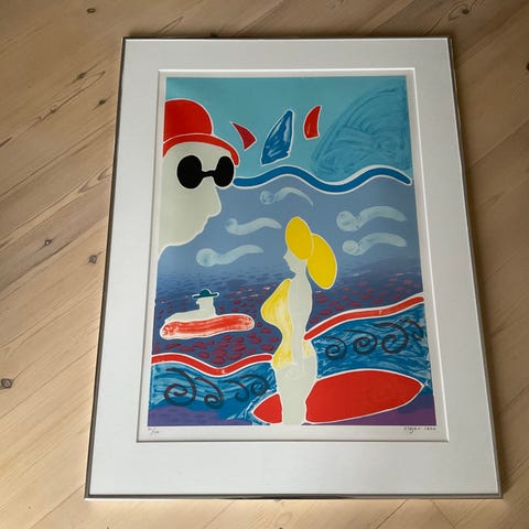To stk. flotte og stemningsfyldte litografier af Tom Krøjer med musikmotiver i farverige, abstrakte former. Værkerne viser musikere med instrumenter i klare, kontrastfyldte farver. Begge litografier er indrammet med lys passepartout og ramme. Signeret “Krøjer 87” i nederste hjørne. Velegnet som vægkunst i stue, musikrum eller andre opholdsrum, hvor der ønskes et farverigt, musikrelateret udtryk.
