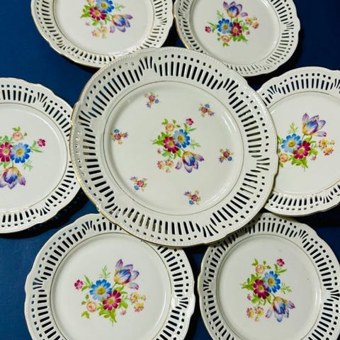 Colclough fine bone china tallerkener fra England med Ivy Leaf-dekor i grøn, guld og hvid, ca. 1950–1960, antik victoriansk stil, i fremragende stand. Klik på den blå "gå til varen" knap, for at købe eller byde på denne vare. Den samlede pris vil blive vist inden du afgiver dit bud.