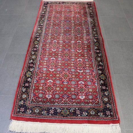 Bidjar-tæppe fra Indien, 318 x 243 cm, ca. 160.000 knuder, 100% håndknyttet med uld på bomuldsvæv, rød og brun, dateret til 1980’erne–1990’erne og i god stand. Klik på den blå "gå til varen" knap, for at købe eller byde på denne vare. Den samlede pris vil blive vist inden du afgiver dit bud.