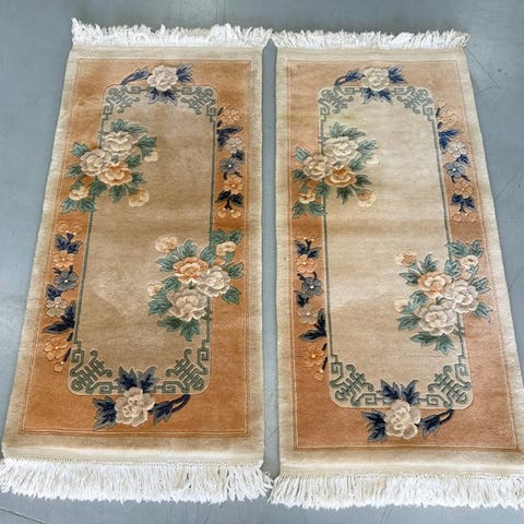 Tre håndknyttede tæpper fra Kina, model China Bettumrandung, uld på bomuld, hver ca. 290 × 85 cm, fremstillet i seneste del af det 20. århundrede, i god stand, med autenticitetscertifikater. Klik på den blå "gå til varen" knap, for at købe eller byde på denne vare. Den samlede pris vil blive vist inden du afgiver dit bud.
