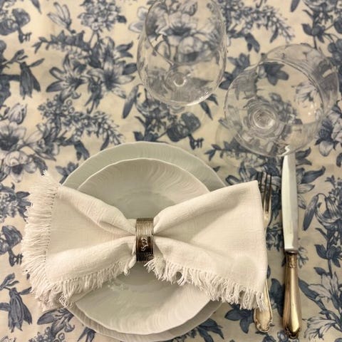 Raffineret bordtæppe i sprøstæt organza, broderet med motiver af buketter af blomster i romantisk stil. Dette smukke broderi, kendetegnet ved en iriserende tråd af høj kvalitet, udmærker sig ved det frodige udseende af blomsterne i relief. Dets originalitet kommer af kontrasten mellem broderiets fyld og organzas huller, som farves af stoffets underliggende farve og får broderiets skønhed til at træde endnu tydeligere frem.