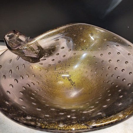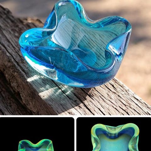 Glasgenstand fra Italien fra 1990–2000, måler 15 cm bred, 5 cm høj og 3 cm dyb, i god brugt stand med mindre aldersmærker og pletter. Klik på den blå "gå til varen" knap, for at købe eller byde på denne vare. Den samlede pris vil blive vist inden du afgiver dit bud.