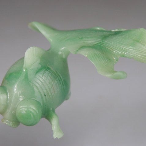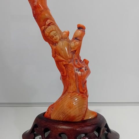 Denne skulptur er udhugget i naturligt koral, i farverne rosa, fersken eller med hvide striber. Denne type koral kaldes ofte "fersken-koral" eller "Midway-koral" på markedet.