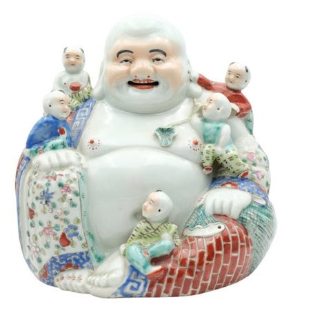 2x skulpturer - Groupe Rince Pinceaux - Den grinende Buddha Hotai-figur - Ste...