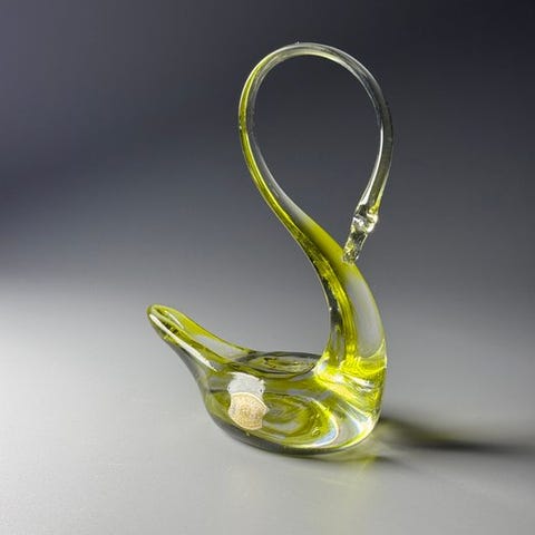 Denne elegante samlergenstand fanger den graciøse bevægelse af en øgle med dens forlængede buede krop og blødt flydende linjer. Subtile lyserøde og grønne inlag i den klare krystal skaber en smuk farve- og lysleg med karakteristisk for Val Saint Lamberts raffinerede midtcentury-produktion.
