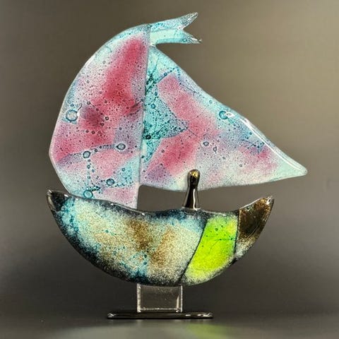 Rainbow Man er en håndlavet glaskunst af den polske kunstner Maciej Habrat, i perfekt stand, måler 24 cm i bredde, 35 cm i højde og 8 cm i dybde, vejer 1300 g, håndskrevet underskrift, lavet i 2026 ved sammenfusing af opalglas og 24-karat guld på en træ-base, leveret med elegant emballage og et certifikat om ægthed. Klik på den blå "gå til varen" knap, for at købe eller byde på denne vare. Den samlede pris vil blive vist inden du afgiver dit bud.