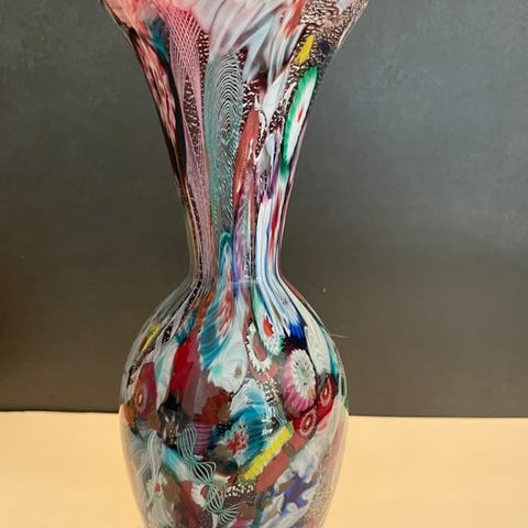 Meget flot vase i scavo-teknik (teknikken efterligner effekten af at have været begravet i jorden i længere tid). Denne teknik anvendes stadig i Murano.