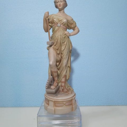 Figuren af den unge dronning er gengivet med stor plastisk følsomhed og en bemærkelsesværdig kvalitet i modellering. Ansigtet, yndeigt