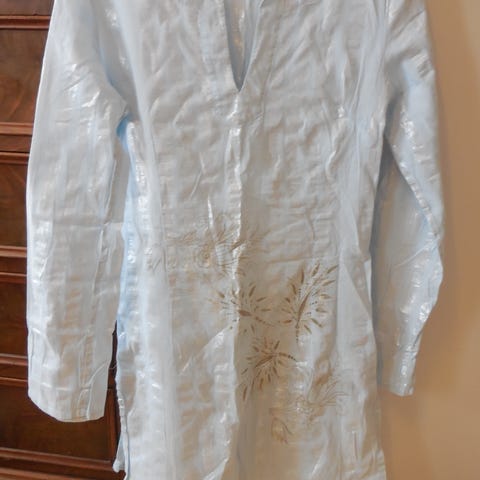 Ny Tunika - TrF. str. 40. Farve: grøn / lilla. Stof: Tror det er silke. Virkelig smuk rummelig ubrugt Bluse / Overdel / Tunika med fine detaljer. Ja.! nærmest Retro i stil. Måler rundt under ærmerne ca. 98 cm. Længde ca. 67 cm. Se alle fotos. Må afhentes eller sendes forsikret med DAO + porto. Se gerne mine andre annoncer - mere kan købes med.