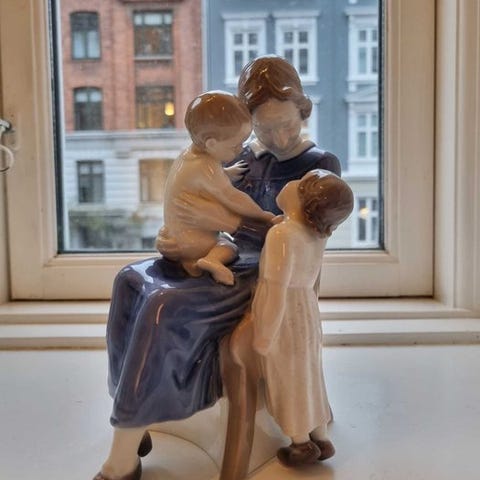 Denne keramiske figur er en kvinde i nationaldragt, designet af Gudrun Meedom Bech og fremstillet af Bing & Grøndahl.