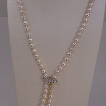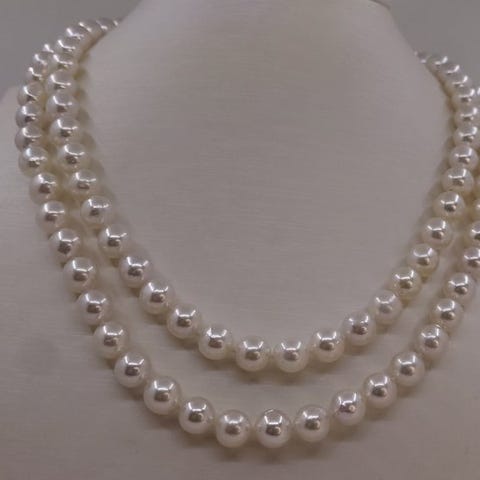 En fantastisk perlekæde blandet af hvide, sølvagtige og champagnegule akoya-perler. Akoya-perlen er en type kultiveret saltvandsperle, der stammer fra Japan.