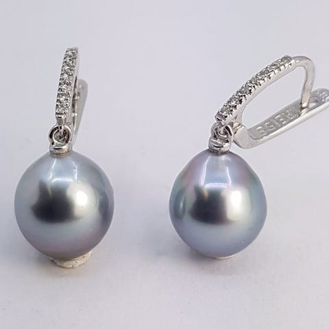 Fremstillet i de varme farvande omkring Japan har disse perler en naturlig, iøjnefaldende sølvgrå farve og ser smukke ud sammen med øreringene i hvidguld.