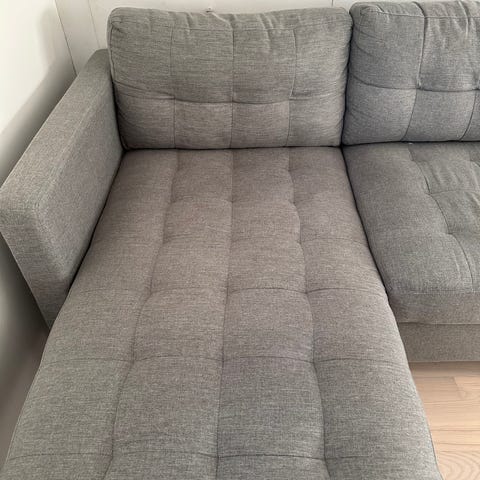 Sofa med chaiselong eller puf, denne kan fast monteres eller være fritstående afhængig af behov.
