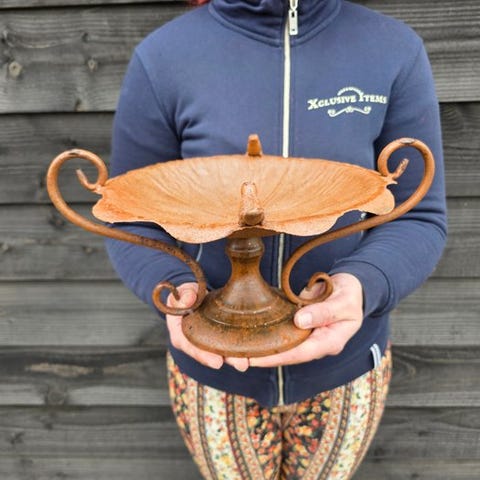 Støbejern fuglebad fra Europa, estimeret periode 2010–2020, i god stand med små tegn på ælde, dimensioner 18 × 22,5 × 10 cm. Klik på den blå "gå til varen" knap, for at købe eller byde på denne vare. Den samlede pris vil blive vist inden du afgiver dit bud.