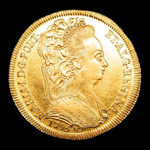 1768 Lisboa, Portugal, guldbrev på 6.400 Reis fra D. José I, sammensætning 916,6‰ guld, vægt 13,16 g, diameter 30,38 mm, uden klassificering. Klik på den blå "gå til varen" knap, for at købe eller byde på denne vare. Den samlede pris vil blive vist inden du afgiver dit bud.