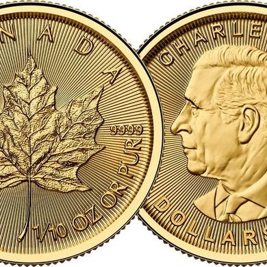 Kanadisk Maple Leaf guldkonvertibelm 7? 1/20 troy ounce, .999 renhed, forædlet i 2026. Klik på den blå "gå til varen" knap, for at købe eller byde på denne vare. Den samlede pris vil blive vist inden du afgiver dit bud.