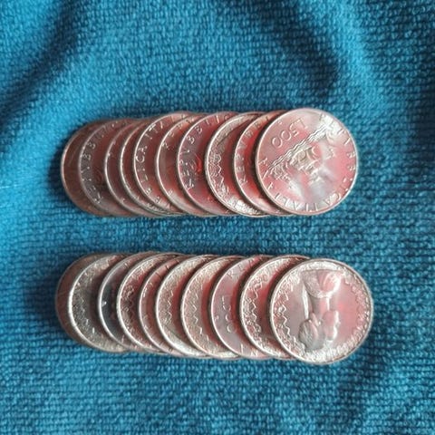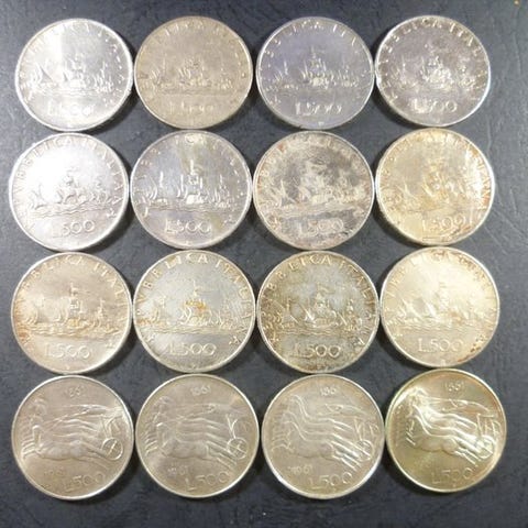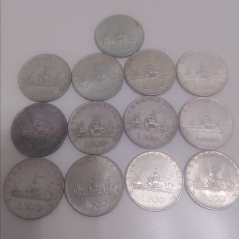 - Indskrifter: Forside: REPVBBLICA ITALIANA. Bagside: L.500.