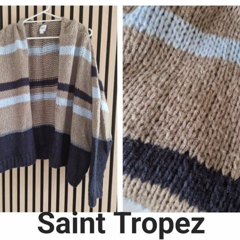 Lang cardigan, Saint TropeZ m. flæsekanter og 1 skjult knap.