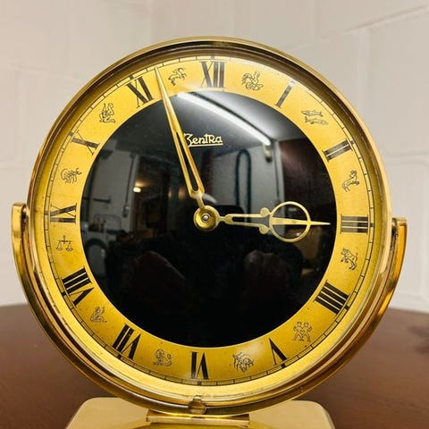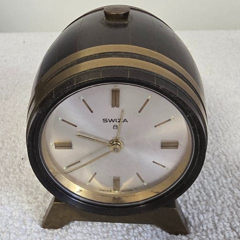 Swiza bordur klokke i messing, Art Déco stil, omkring 1970–1980, mekanisk håndoptrukket bevæger, uendelig gangreserve, i god brugt stand og i funktion. Klik på den blå "gå til varen" knap, for at købe eller byde på denne vare. Den samlede pris vil blive vist inden du afgiver dit bud.