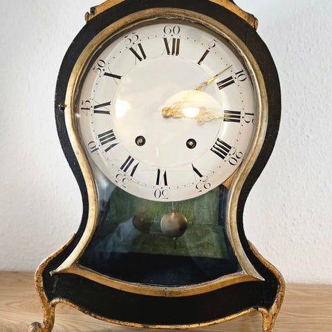 Godt fungerende antik væghængt ur omkring 1900, man kan se det, fordi viserne er fastgjort til urværket