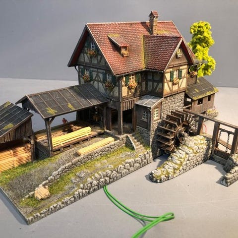 Meget professionelt malet, vejrbestandig, patineret og bygget med nyt eller eksisterende byggesæt, af vores tyske kunstner