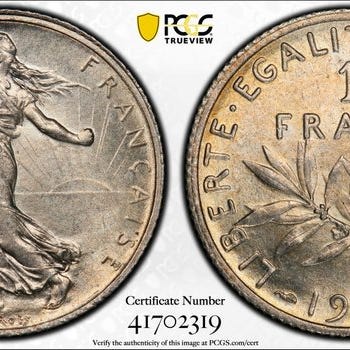 1 mønt fra 1867, ateliér K (Bordeaux), meget sjælden TTB