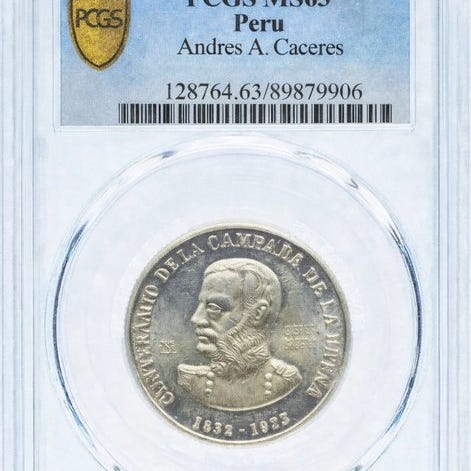 Peru, Lima; 1 Dinero sølvmønt fra 1912, PCGS MS63. Klik på den blå "gå til varen" knap, for at købe eller byde på denne vare. Den samlede pris vil blive vist inden du afgiver dit bud.