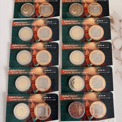 Uforgængelig 2-euro møntesæt, 2023 Vermeer, ti styk i et møntkort, præget af Koninklijke Nederlandse Munt, oplag 5000. Klik på den blå "gå til varen" knap, for at købe eller byde på denne vare. Den samlede pris vil blive vist inden du afgiver dit bud.