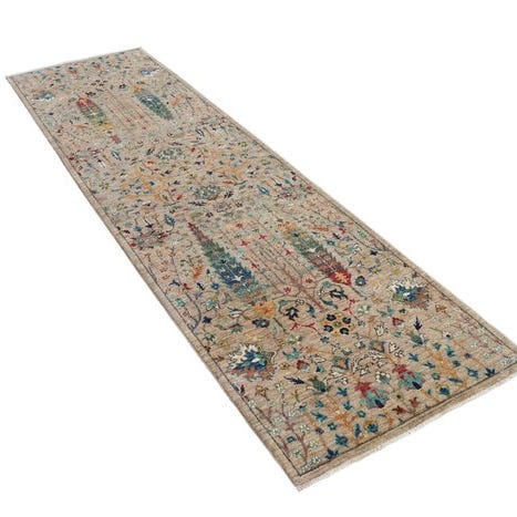 Dette tæppe er i Pakistan fuldstændigt håndknyttet af høj kvalitet råuld. Dens tætte struktur giver en behagelig berøring og høj holdbarhed. Det harmoniske samspil af traditionel symbolik og moderne farvevalg gør den til et ægte designerstykke – ideelt til krævende opholdsrum.