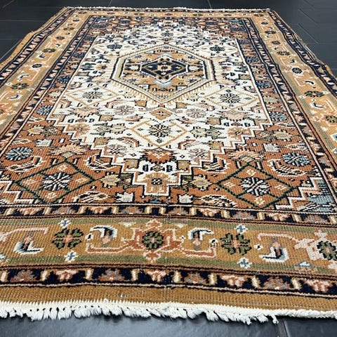 Oprindelsesland: Pakistan; Model: Orient Mix Set; 4 stk; uld på bomuld; mål 155 × 55 cm; generelt god stand. Klik på den blå "gå til varen" knap, for at købe eller byde på denne vare. Den samlede pris vil blive vist inden du afgiver dit bud.