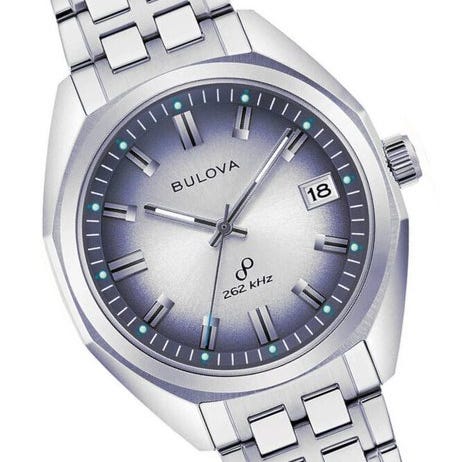 Uret ligger i en stålskab og sidder på en behagelig stålrem. Uret leveres med en almindelig Bulova-æske som vist.