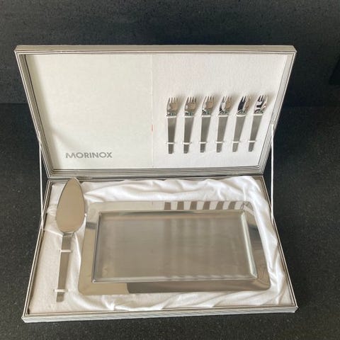 Eksklusiv legumiera med stort visuelt indtryk produceret af den historiske italienske manufaktur Morinox, et eksemplar af designindustriens excellence fra 1980'erne. Genstandens signatur er designerens navn, der formåede at forene avantgarde geometriske linjer med materialernes nobility.