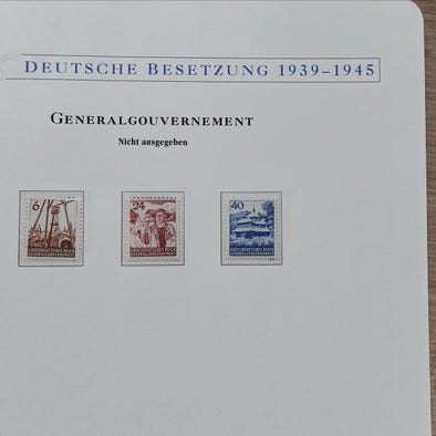 Geografisk oprindelse Generalgouvernement, titel Deutsche Besetzungsausgaben 1939/45 Generalgouvernement, tilstand MNH (postfrisch); komplet ungjorte samling med Michel 2023 nr. 1-125, Dienstmarken 1-36, Zustellmarken 1-4 på Leuchtturm fortrykte ark. Klik på den blå "gå til varen" knap, for at købe eller byde på denne vare. Den samlede pris vil blive vist inden du afgiver dit bud.