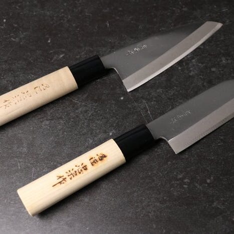 Bladet er fremstillet af Shirogami (Hvidt stål) og Aogami (Blåt stål), velkendt blandt japanske kniventusiaster for