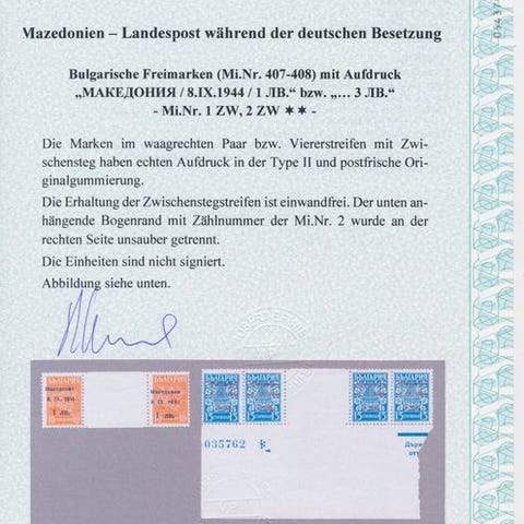 Det tyske rige – Zara-besættelsen: Luftpostfrimærke 2 Lire med tryk, sjælden pladefejl på felt 21, oplag 93 stk, ubrugt med originalgummi og certifikat. Klik på den blå "gå til varen" knap, for at købe eller byde på denne vare. Den samlede pris vil blive vist inden du afgiver dit bud.