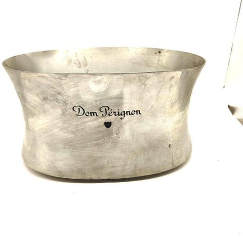 Fremstillet af høj kvalitet tin ( pewter ) med Silver Prestige-finish, præsenterer denne imponerende køler branding af Dom Pérignon låst ud i guld på en af siderne og det ikoniske Dom Pérignon-skjold på modsatte side, hvilket skaber en elegant og sofistikeret visuel kontrast.