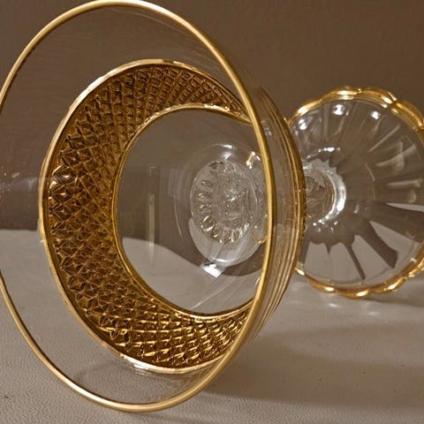 Jeg vil gerne sætte særligt fokus på formen på glassene, yderst elegante, med den fineste dekoration, unik i sin art.