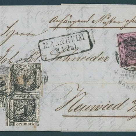 Baden 1862 - Frimærker fra 5. udgave overkomplet + 1 brev og 2 brevforsider M...