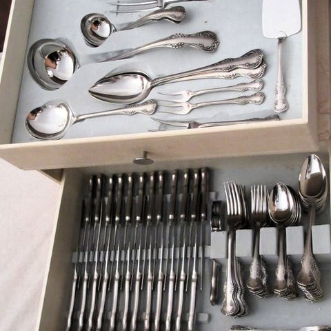 Pragtfuldt tungt sølvbelagt bestik til 6 personer / 54 dele + 6x opdelerbestik.