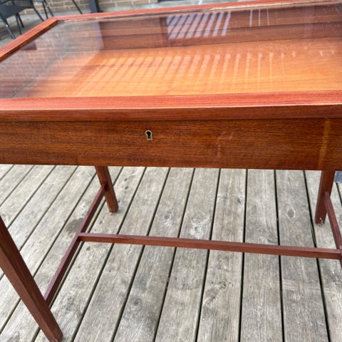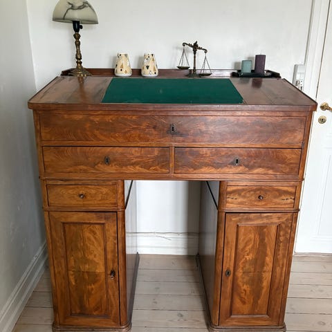skrivebord med vitrinedel i træ