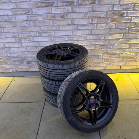 Gode dæk. Fælge er med små brugsspor. Ingen kantkys. Har kun fået en let rengøring.