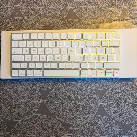 Apple Magic Keyboard og Magic Mouse trådløst tastatur og mus i hvid.