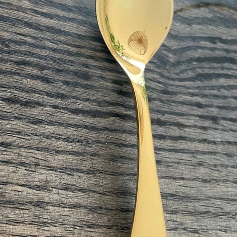 Georg Jensen årsskeer i forgyldt metal fra 1976 og 1979. Skeerne har præget årstal på skaftet og leveres i æske. Designet er dekorativt og egner sig både som samlerobjekt og som bordbestik ved særlige lejligheder.