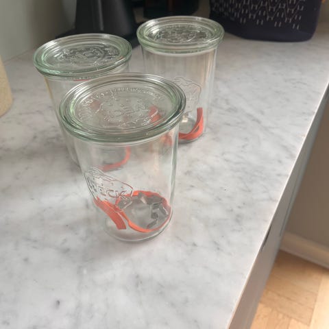 Weck glas - 2 stk 850 glas med låg/gummiring /clips pr stk 15 kr