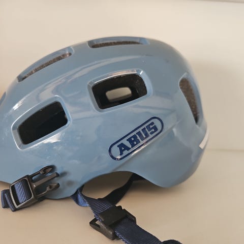 Brugt som ekstra cykelhjelm til når bedsteforældrene skulle hente, så meget sparsomt brugt. Lettere brugsmærker/ridser i 'lakeringen', men ingen ulykker.