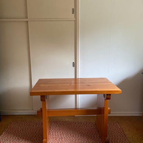1 fyrretræs sofabord. Mål: 136 x 76 x 54cm 50kr .
