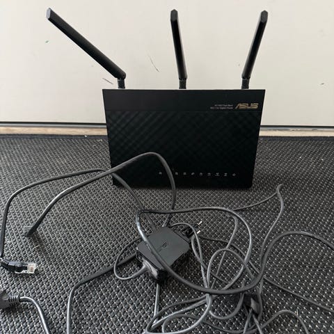 Model RT-AX88U. AX6000 Dual Band WiFi 6 (802.11ax) Router supporting MU-MIMO and OFDMA technology, with AiProtection Pro network security powered by Trend MicroTM, built-in wtfast® game accelerator and Adaptive QoS Gaming, 1.8 GHz quad-core processor. Virker som den skal. Har desværre ikke den originale indpakning mere.