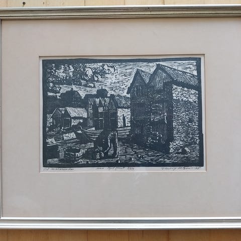 Færøsk bygd 41 x 41 cm. Sign. Jeppe Jeppesen. Malet på plade. Kan sendes.