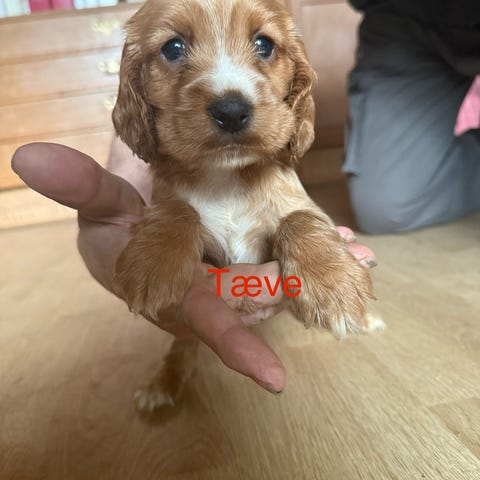 Loui, er hunde-faren og også en blanding mellem Cocker og cavalie.. Han er rødlig karamel farvet, 3 1/2 år og en super godmodig og kærlig hund. Meget rolig og lidt stille.