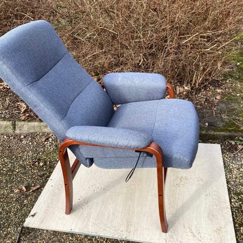 Virkelig dejlig stol/ lænestol at sidde eller hvile i. Stolen har været brugt med et betræk henover, så den er meget pæn og helt uden pletter. Mener at belastning af stolen er på max 120 kilo. - Kom og prøv den. :-)